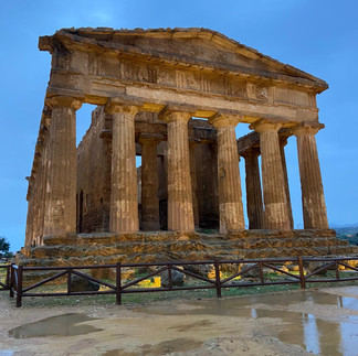 Às 11h30, partimos para Agrigento (72 kms de autocarro). Quando chegámos, chovia, havia relâmpagos, trovões, em suma, era a festa completa! Tínhamos um packed lunch que acabámos por ir comer ao centro comercial enquanto esperávamos que a chuva passasse. Não passou.